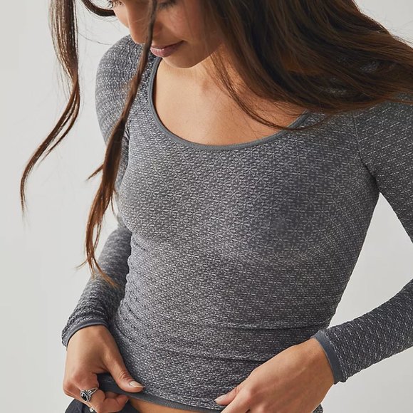 Free People Love Letter Long Sleeve In Gray Lyst